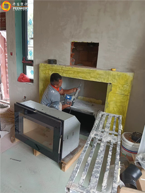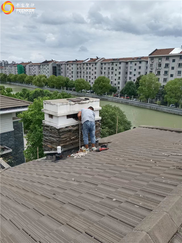 項(xiàng)目介紹:常州聚博花園別墅有現(xiàn)成的磚石爐膛和磚石煙囪,客戶選擇丹麥Morso S80-90嵌入式壁爐安裝,單層不銹鋼煙囪從磚石煙道中穿出!平客項(xiàng)目部帶隊(duì)上門安裝!
