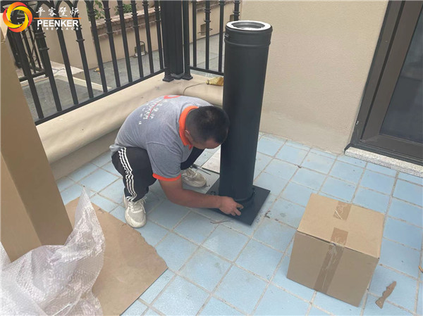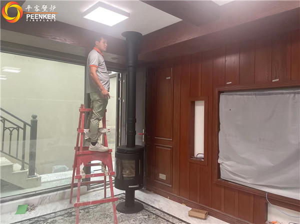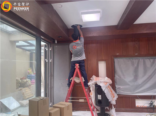 項(xiàng)目介紹:這是南京加州城別墅業(yè)主家的第二臺(tái)壁爐,2021年安裝了法國(guó)totem的嵌入式壁爐,本次為業(yè)主安裝的壁爐是丹麥morso獨(dú)立式火爐7648,因?yàn)榘惭b位置無(wú)法出側(cè)墻安裝,所以選擇出頂?shù)铰杜_(tái)的安裝形式,后期業(yè)主做好屋面防水,平客壁爐帶隊(duì)上門安裝!
