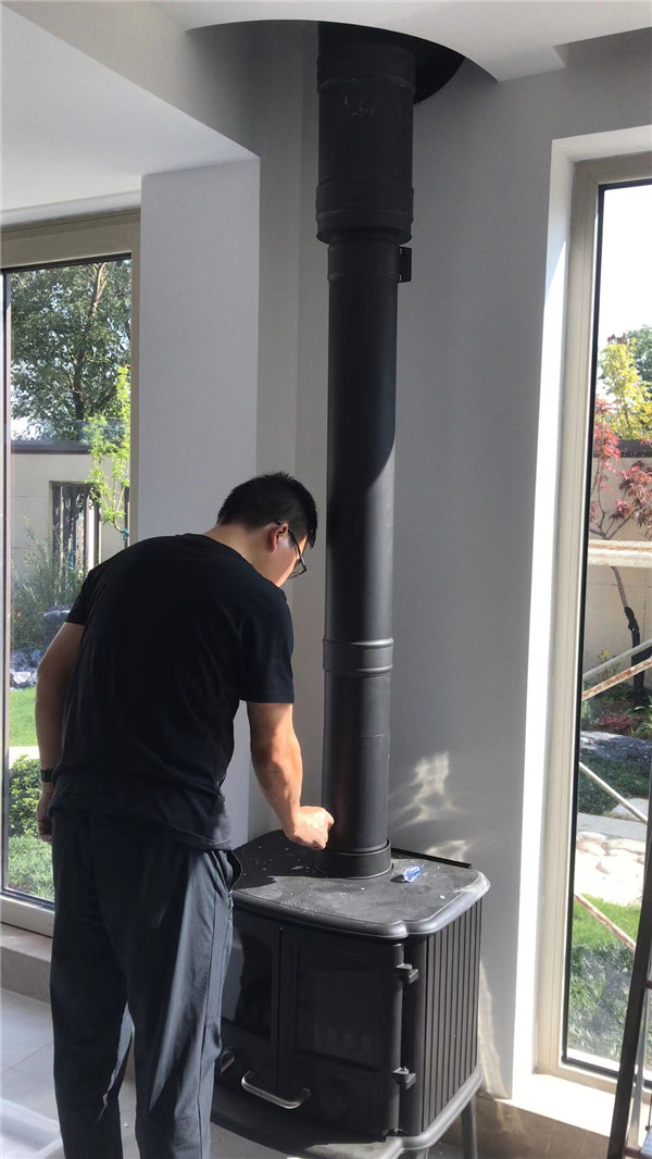 項目介紹:該項目由【平客壁爐】項目部遠(yuǎn)程指導(dǎo)安裝,戶外使用丹麥Exodraft壁爐風(fēng)機(jī)代替?zhèn)鹘y(tǒng)煙囪,這樣戶外就看不見煙囪。