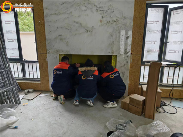 項目說明:鎮(zhèn)江紫金7號別墅自帶磚石煙道和爐膛,客戶選擇的這款Sigma嵌入式壁爐,是一款對流型壁爐。該項目由【平客壁爐】項目部帶隊上門安裝!