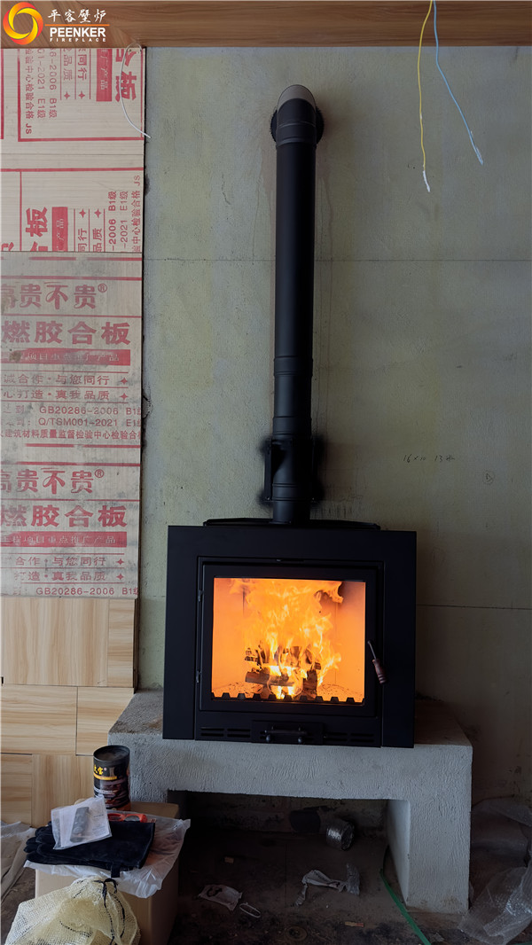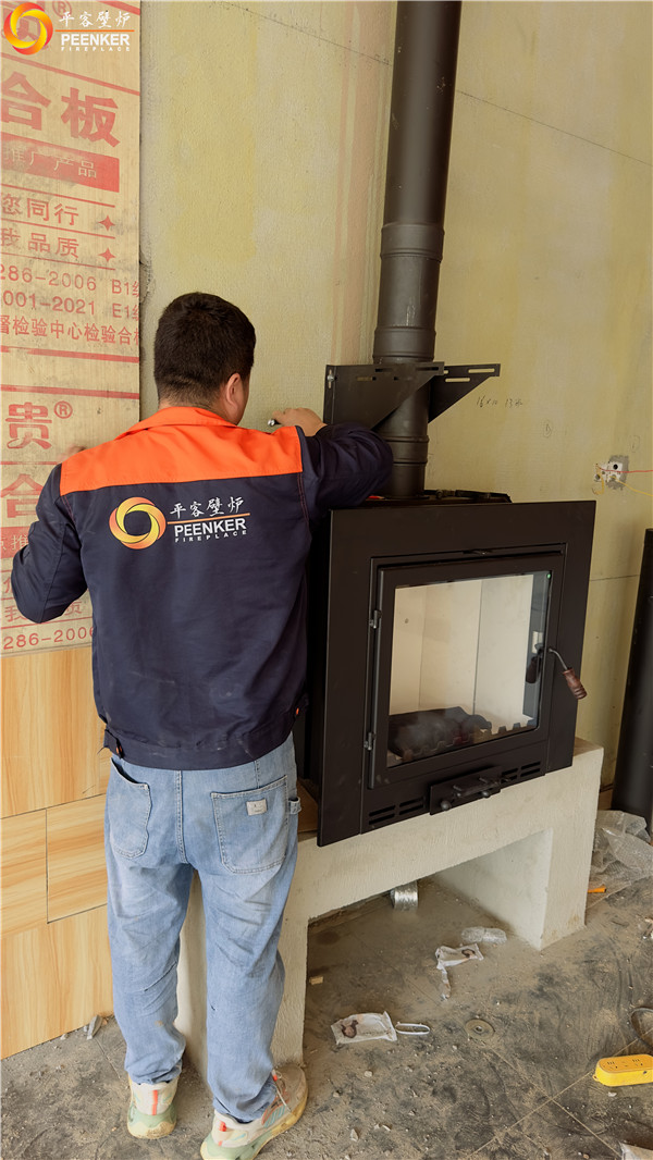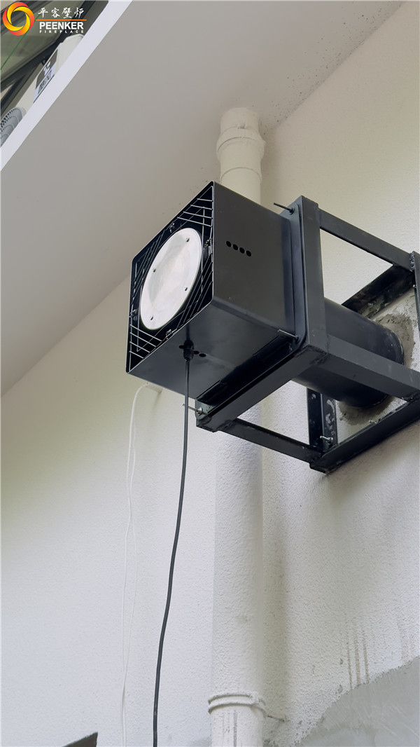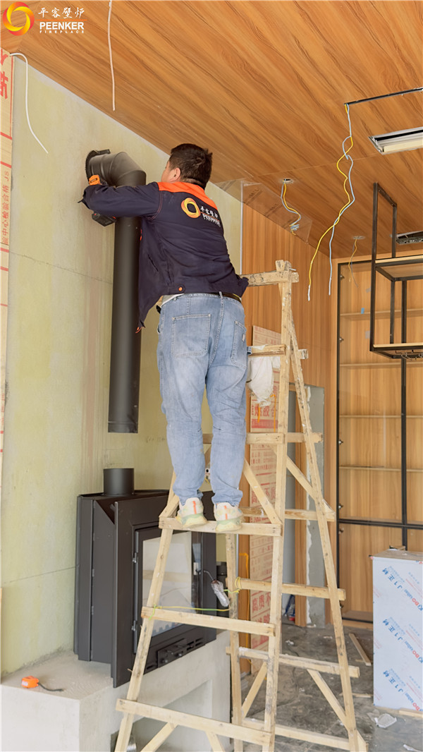 項目介紹:該項目為自建房類民宿項目,戶外因有屋檐阻隔,選擇使用國產(chǎn)壁爐風機代替戶外煙囪,解決抽力問題。【平客壁爐】項目部帶隊上門安裝。