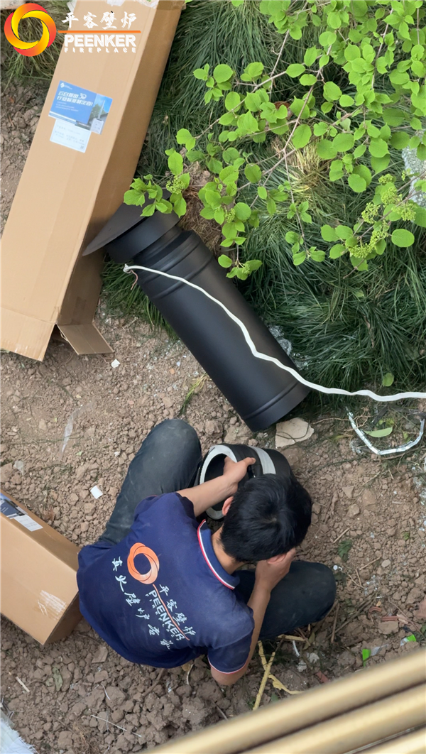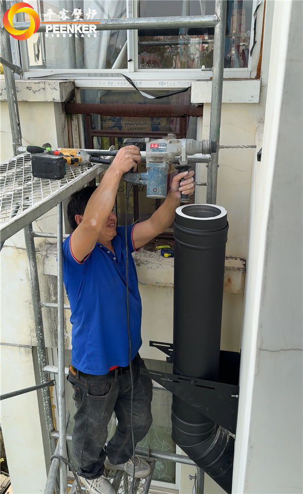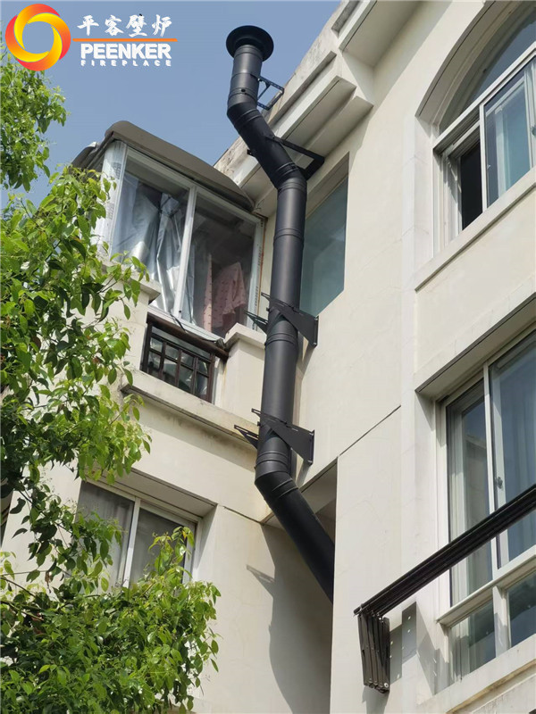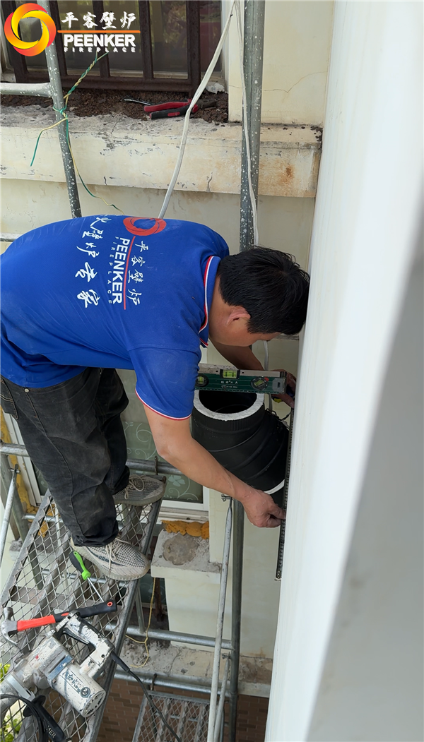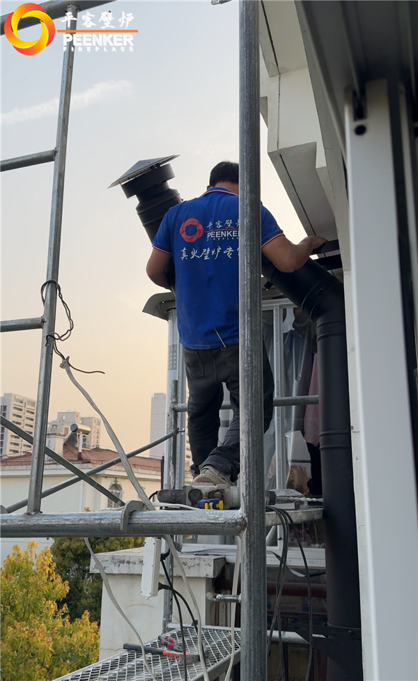 項目情況:項目位于上海浦東新區(qū)虹盛路金楓豪苑別墅,壁爐安裝客廳位置,煙囪出側(cè)墻到戶外豎直加高過屋檐。由平客壁爐項目部帶隊上門安裝。
