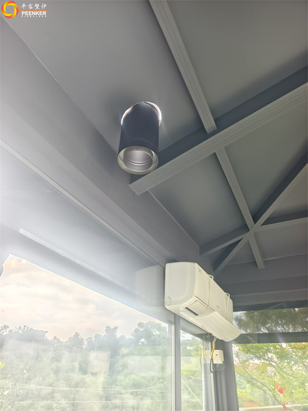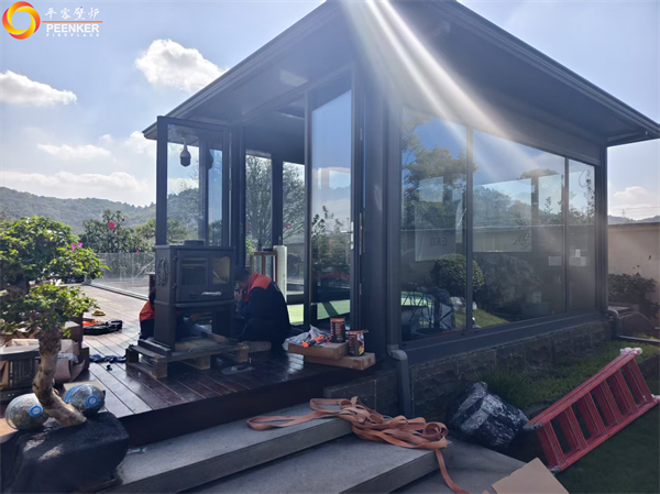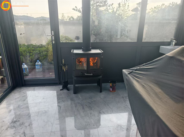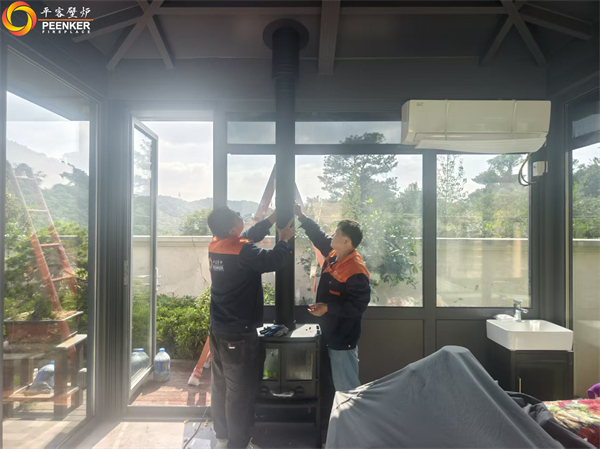 項(xiàng)目情況:該項(xiàng)目位于鎮(zhèn)江紫金7號(hào)別墅,壁爐安裝在庭院陽(yáng)光房中,因壁爐煙囪垂直高度達(dá)不到5米要求,戶外使用壁爐風(fēng)機(jī)解決抽力問(wèn)題。由平客壁爐項(xiàng)目部帶隊(duì)上門(mén)安裝。