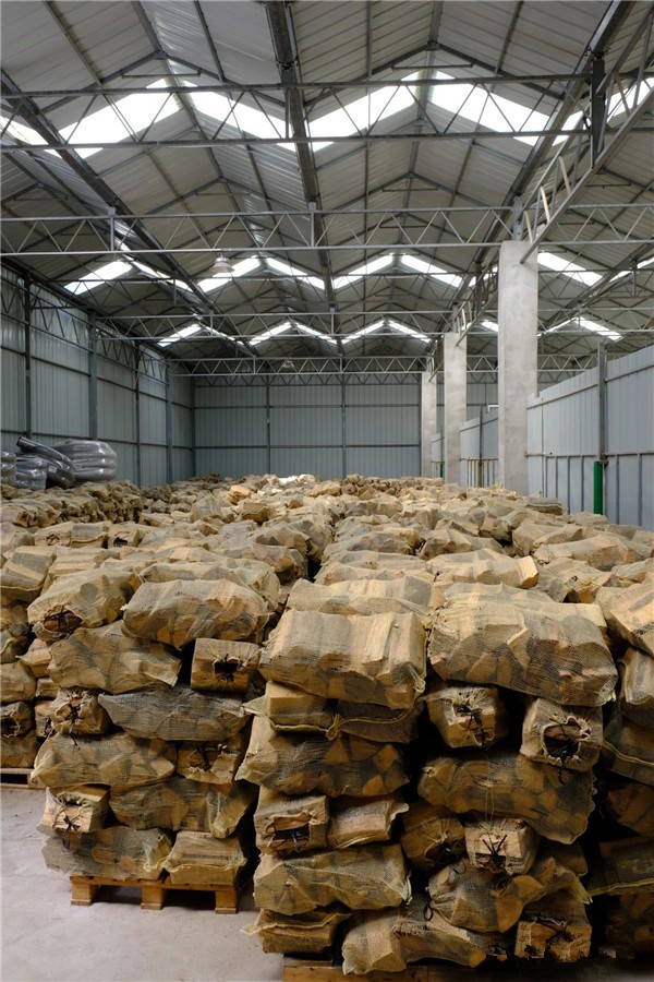 燃木長度為25±1cm,一致性好,網(wǎng)孔袋包裝(有效容量45L),櫟木槐木混裝,22袋為1立方米,品質(zhì)與我們以前從東歐進口的燃木別無二致。
