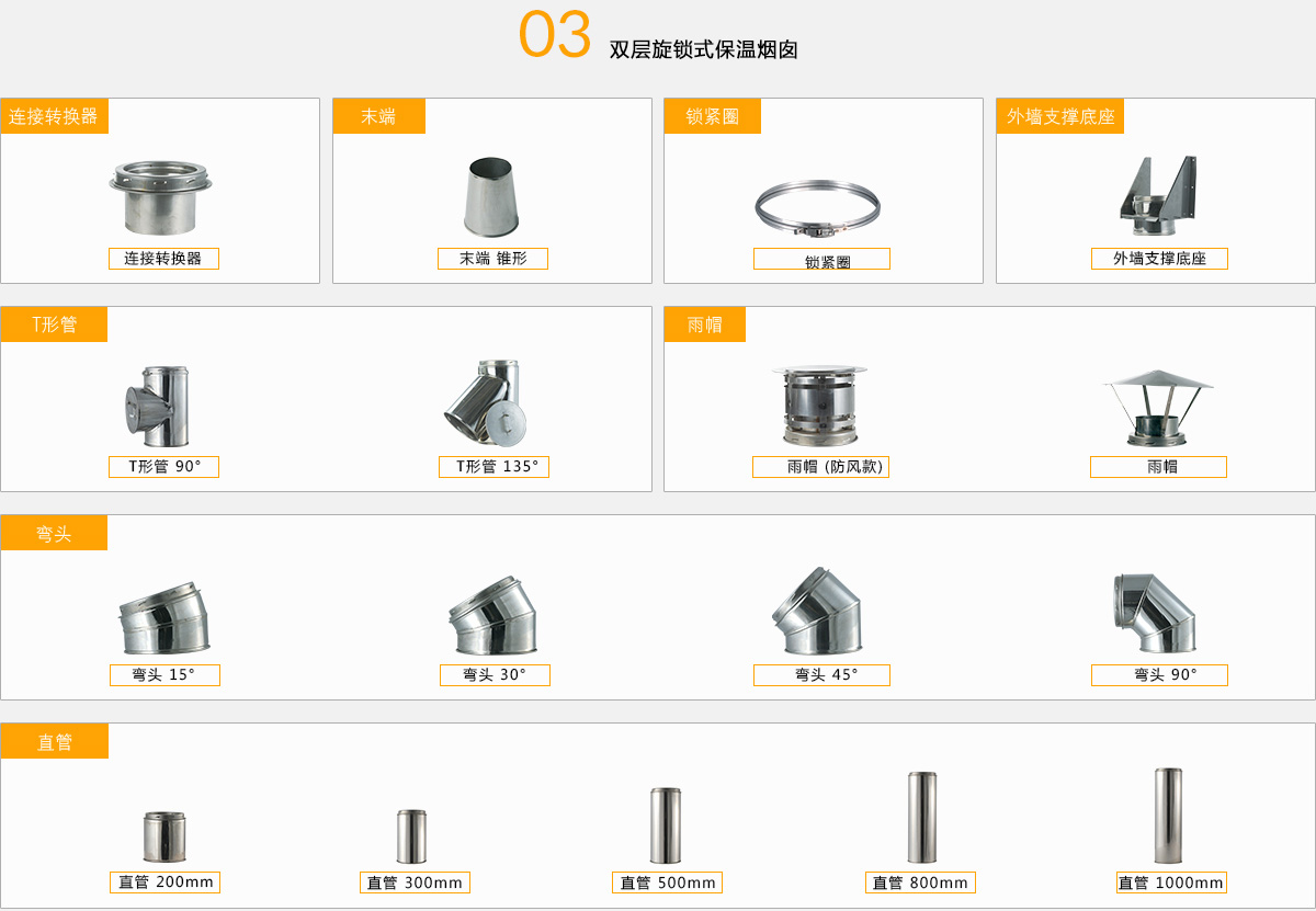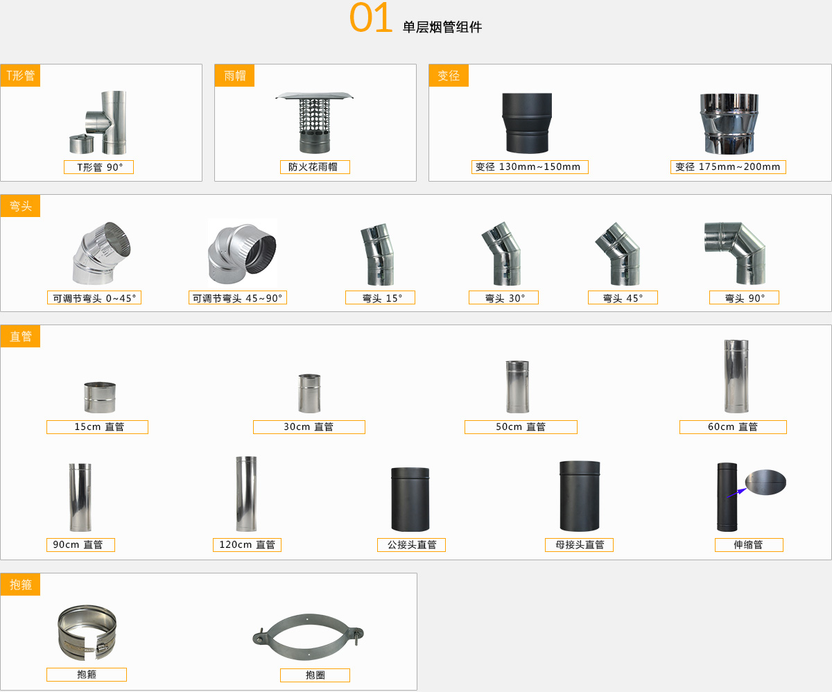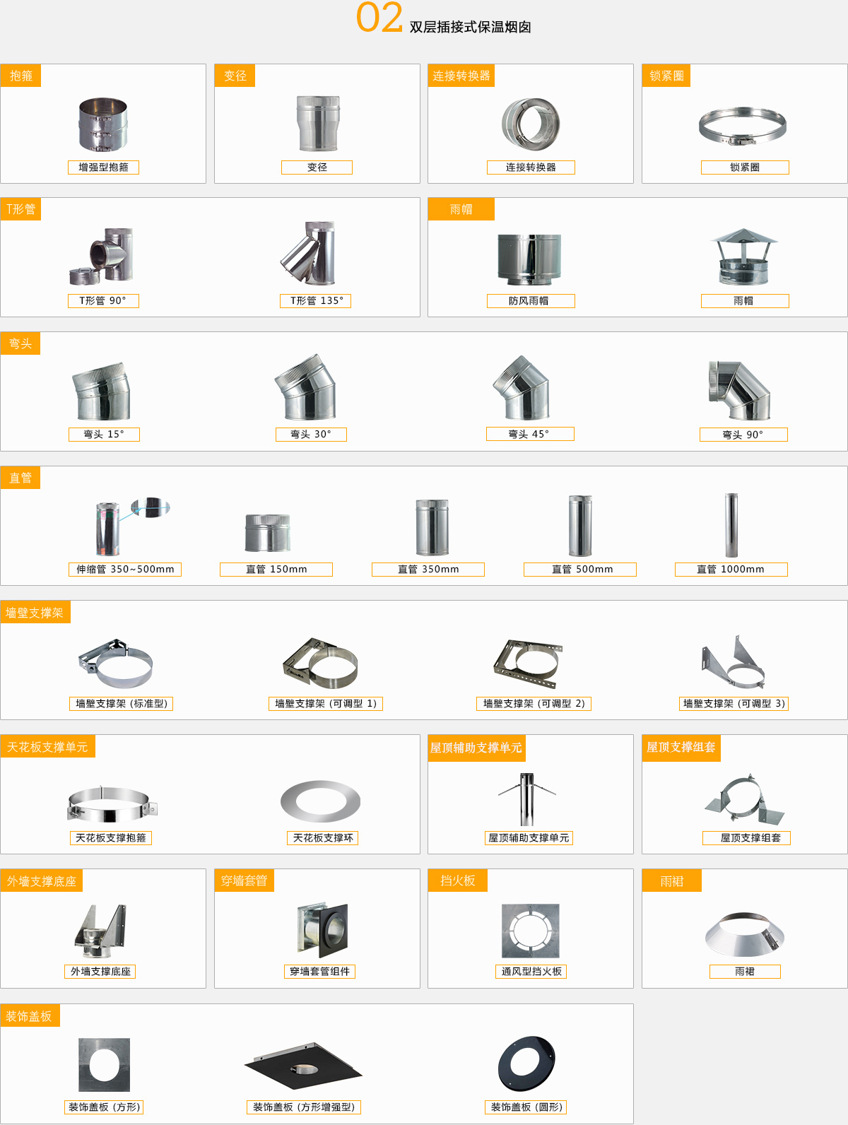 國內(nèi)專業(yè)的真火壁爐煙囪組件庫 種類多達206種/長期儲備上千套配件 足以從容應對各種安裝挑戰(zhàn) 煙囪組件全部符合歐盟BS EN 1856-1:2009安全認證 關鍵組件采用316不銹鋼制作 確保超長壽命