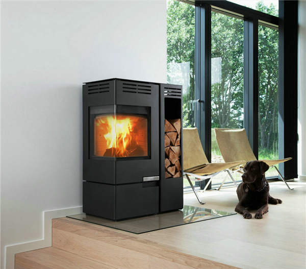 這款火爐有一個非常實用的選配件——燃木儲存架,它可以存放大約20根較粗的燃木,是普通柴籃容量的3~5倍。燃木存放在這里有幾個顯而易見的好處:省去了柴籃,燃木擺放更整齊美觀,最重要的是這里緊靠火爐,燃木在被拋入爐膛前還可以在這里進一步干燥。