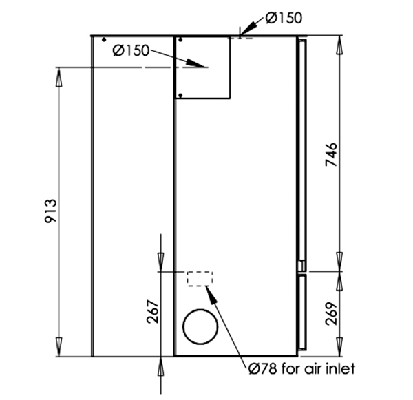 為了方便安裝戶外進風(fēng)管,Aduro 12 配備了三個方向的進風(fēng)接口:左側(cè)、右側(cè)、下方,對于轉(zhuǎn)角火爐來說這種設(shè)計非常貼心,用戶可以自由選擇從哪堵墻(或者地面)開孔引入戶外空氣。下圖展示了這種靈活性帶來的好處。