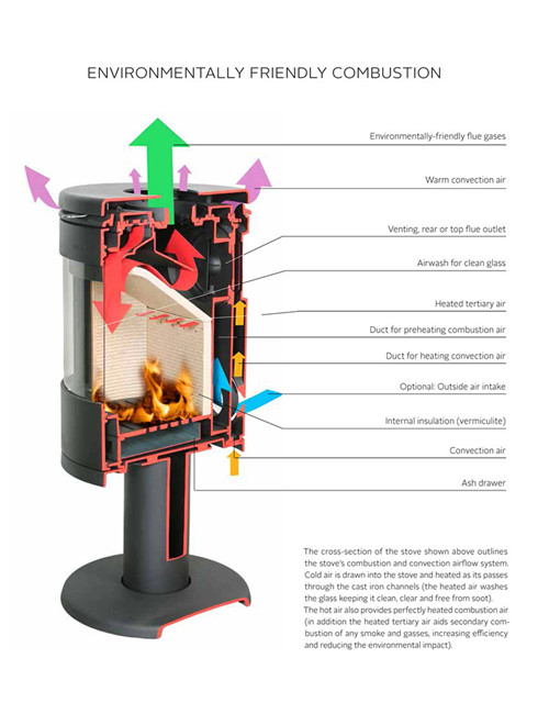 可能您對80%和45%的燃燒效率沒什么概念,舉個簡單的例子,為什么很多人會認為用燃木取暖就是污染環(huán)境,因為我們都見過燃木在開放式燃燒下,會產(chǎn)生大量的黑煙的結果。在開放燃燒的情況下,燃燒效率只有20%左右,大量的多余的冷空氣帶走燃木燃燒時產(chǎn)生的熱量,導致燃木不能被完全的燃燒,從而形成顆粒物,也就是我們所說的煙塵!在燃燒效率80%的情況下,燃木完全燃燒,無任何可見顆粒物,燃燒效率越高,供熱效果就越好,也更省燃料,而現(xiàn)在的進口壁爐,一般具備雙重燃燒甚至三重燃燒結構,冷空氣進入壁爐燃燒前,先在爐體中進行加熱,避免冷空氣進入降低燃燒效率,其次,初次燃燒時產(chǎn)生的輕微顆粒物也會在爐膛中再次燃燒,這主要和爐體的設計結構有關!